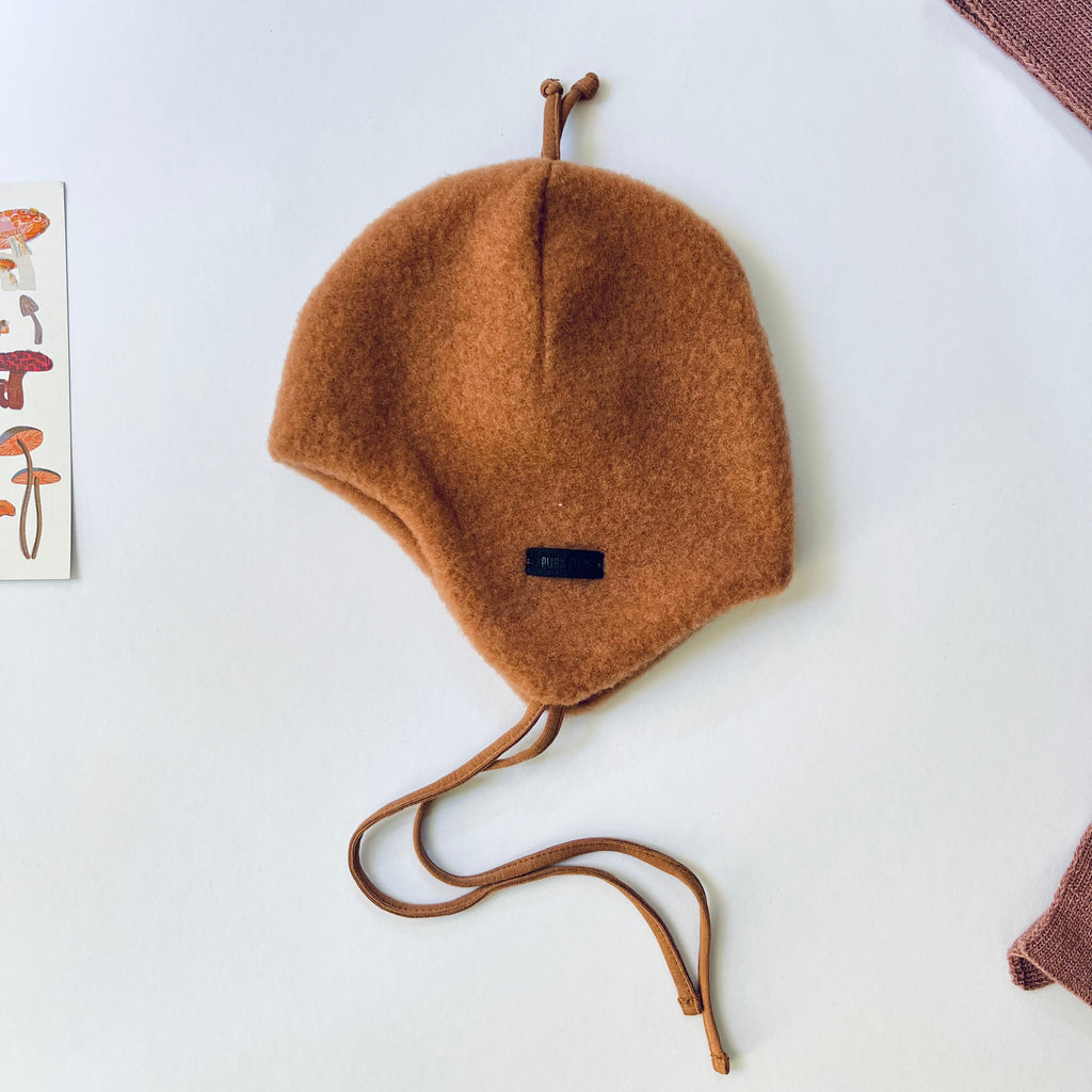 Babymütze Wollfleece aus reiner Bio-Merinowolle "Walnuss“
