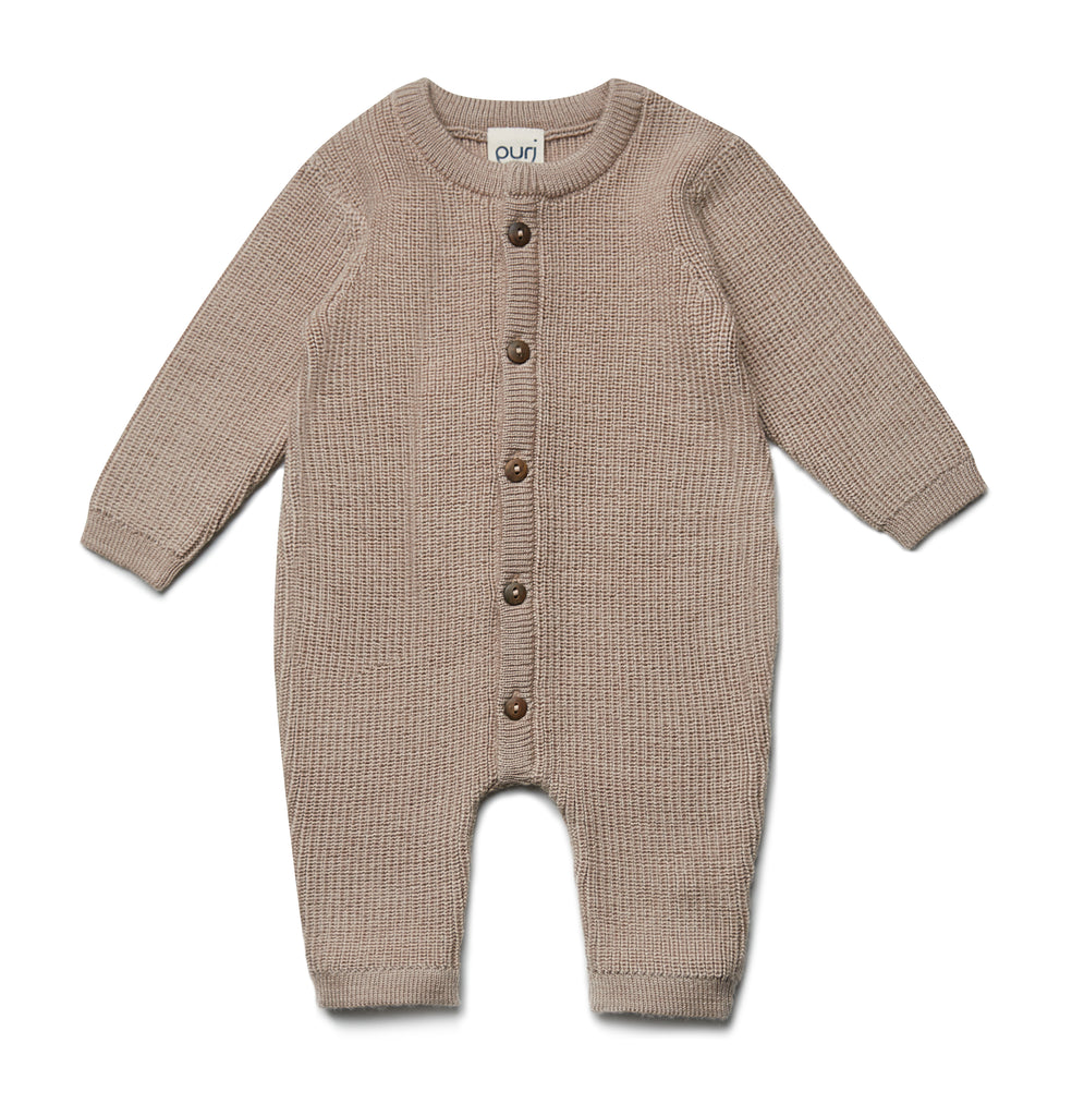 Babyanzug Rippstrick aus reiner Merinowolle "Sandmelange"