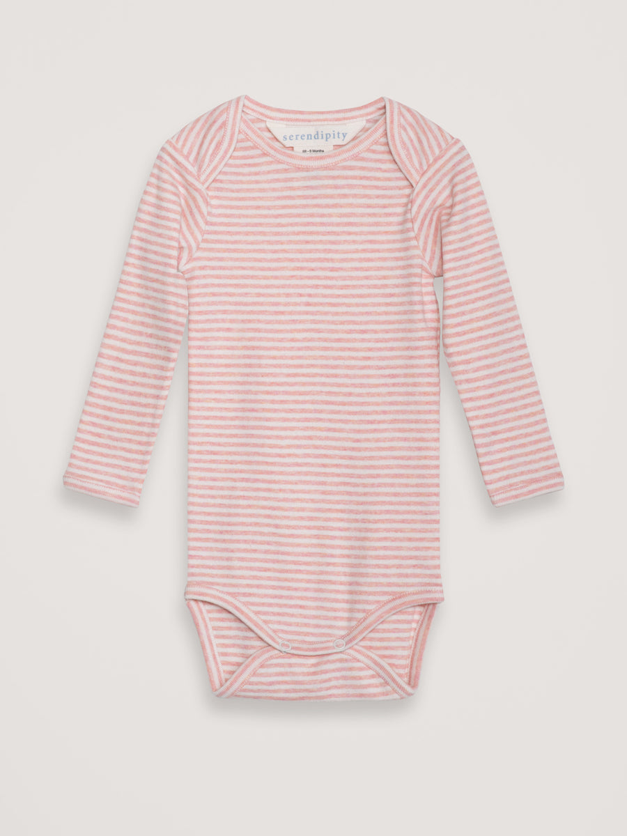 Babybody Langarm aus reiner Bio-Baumwolle geringelt "Coral/Ecru“
