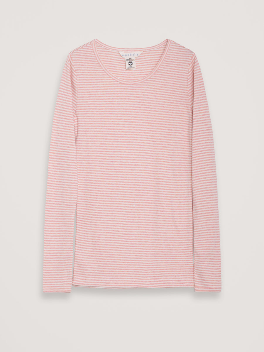 Damen-Langarmshirt aus reiner Bio-Baumwolle geringelt "Coral/Ecru"