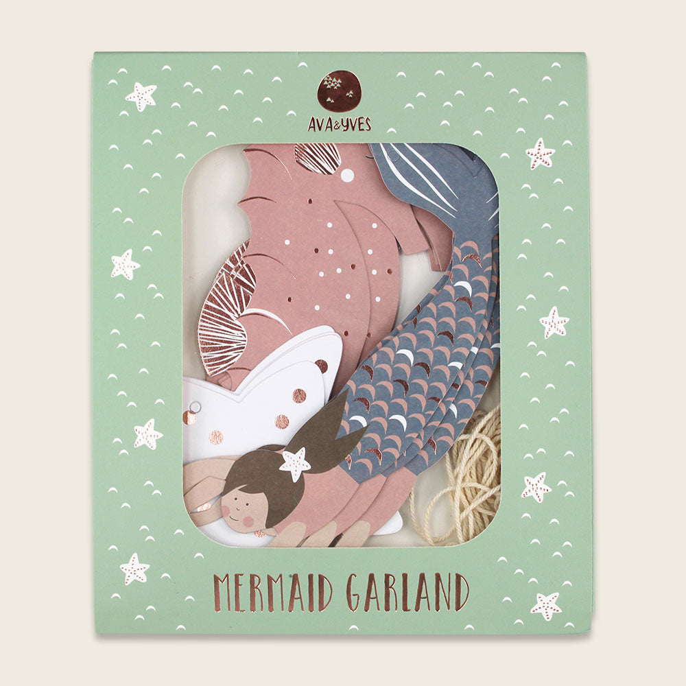 Hochwertige Deko- und Partygirlande im Ava & Yves Design zum Thema „Meerjungfrau“.