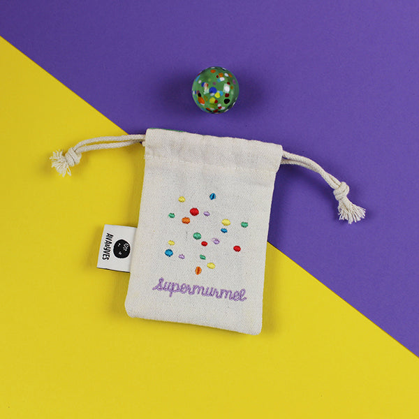 Ein kleiner Schatz sind die großen Glasmurmeln aus echtem Muranoglas. Die kunstvoll hergestellten Glaskugeln von Ava und Yves kommen in einem ebenso hübschen Stoffbeutel. Wir haben die Murmeln in zwei Ausführungen für Euch da:
