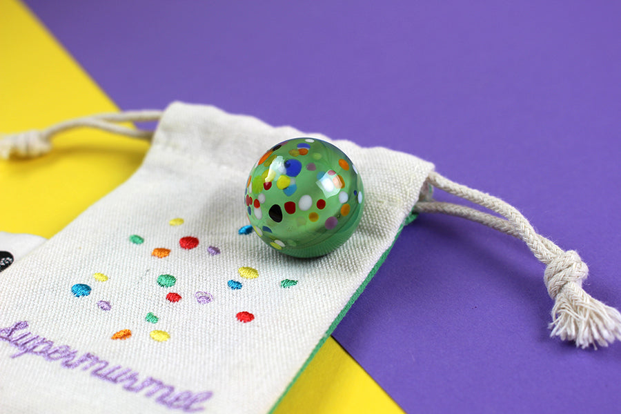 Murmel aus Muranoglas im Stoffbeutel „Konfetti Orange“ oder „Konfetti Grün“