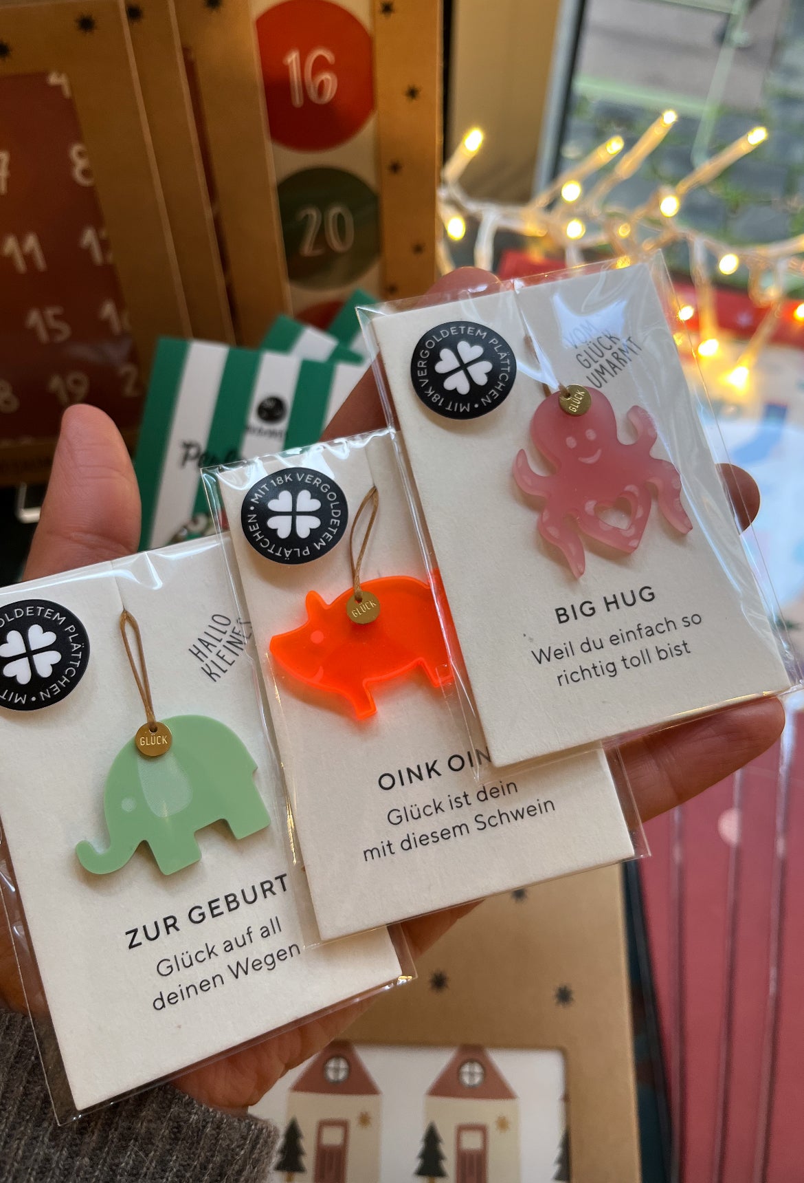 Glücksbringer Anhänger aus Acrylglas mit 18K vergoldetem Plättchen „Glücksschwein“