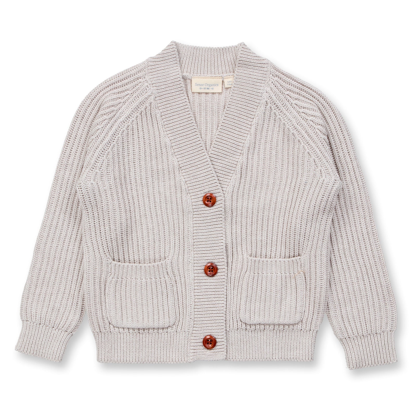 Lässige Strickjacke für die Großen von Sense Organics aus kuscheligem Strick in 100% Bio-Baumwolle. Dieser dichte Strukturstrick ist angenehm wärmend – fast wie Wolle! Moderne Details: Die Raglanärmel sind längs strukturiert, vorne sind Taschen aufgesetzt, die Holzknöpfe kommen in Hellbraun und der Schnitt ist wie eine Blouson. Die Farbe ist ein warmes Beige. Ein toller Begleiter für jeden Tag, denn er überzeugt auch durch seine unkomplizierte Waschbarkeit.