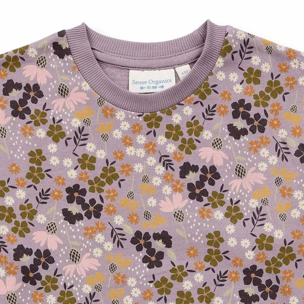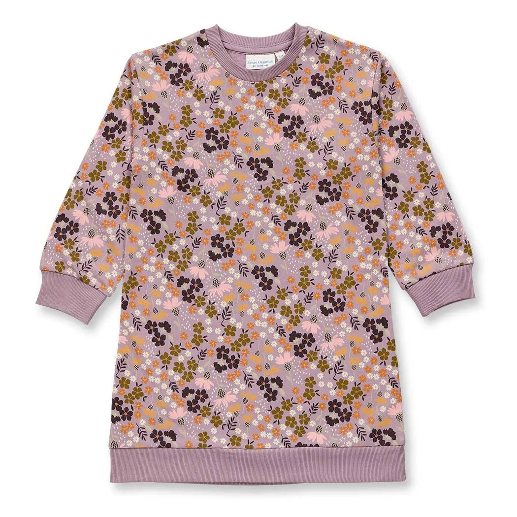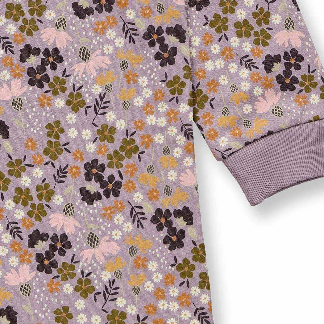 Kinderkleid Sweat aus reiner Biobaumwolle „Mauve Flowers“