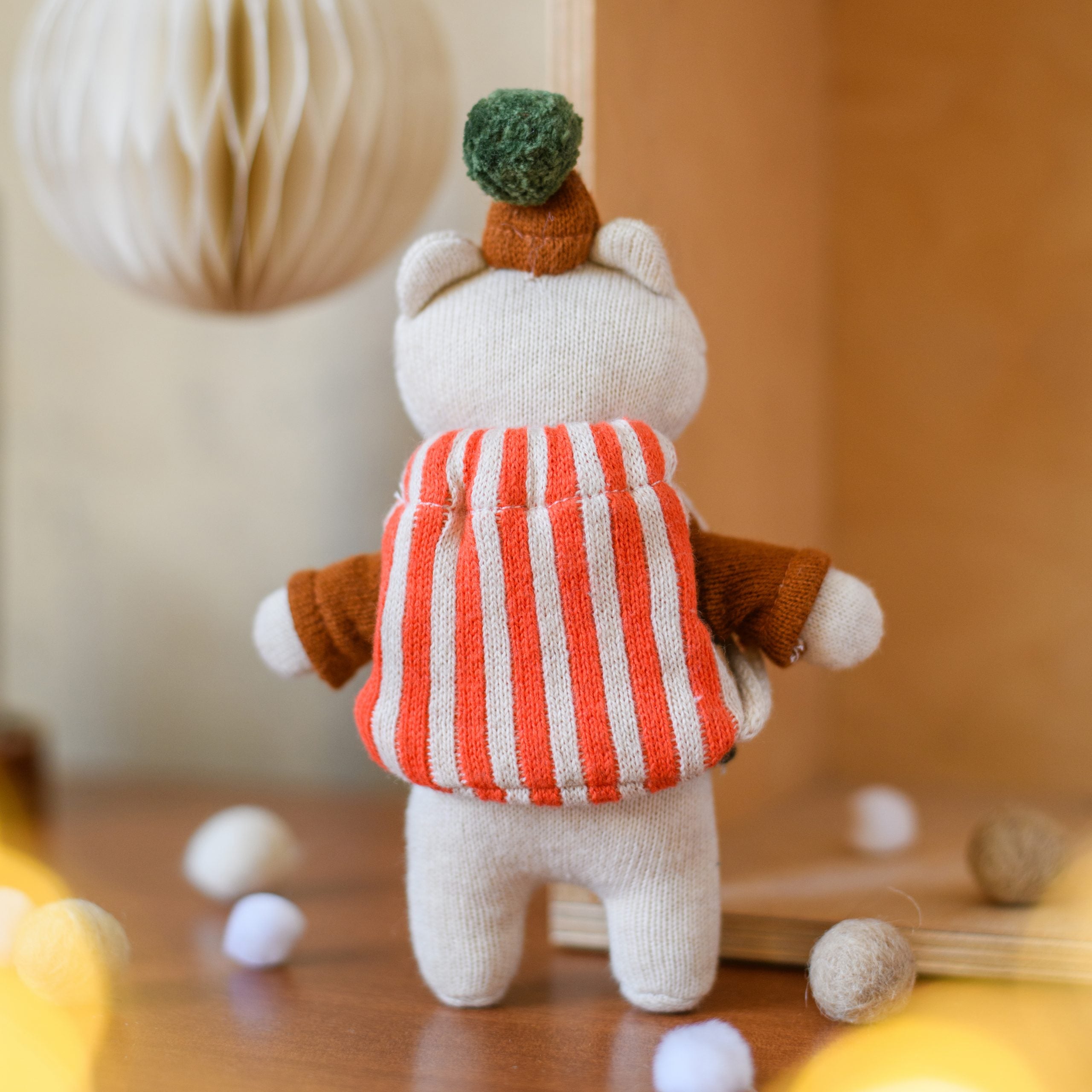 Mini-Kuscheltier aus Bio-Baumwolle „Weihnachtsbär mit Rucksack“