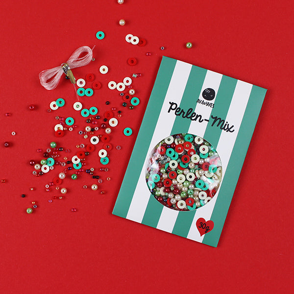 Perlen-Armband-Set in Geschenkhülle „Mintgrün & Rot“